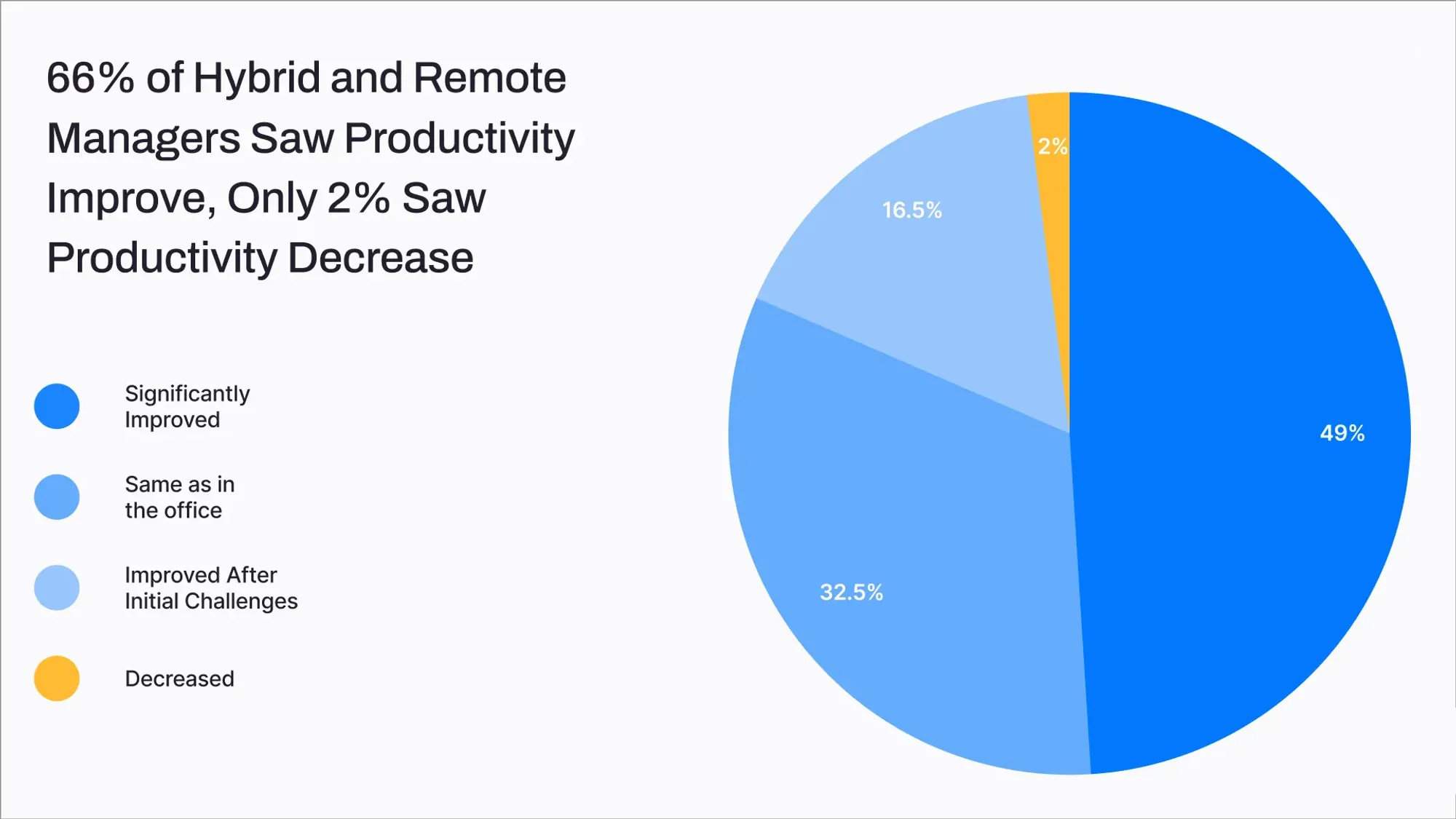 Autonomy requires trust, and as remote work relies on independent decision-making, employers can empower their employees with control over their schedules. This often boosts motivation and brings a sense of ownership, and as a result, higher productivity. A study by Owl Labs found that 79% of workers feel happier with their jobs when they can work from home.
