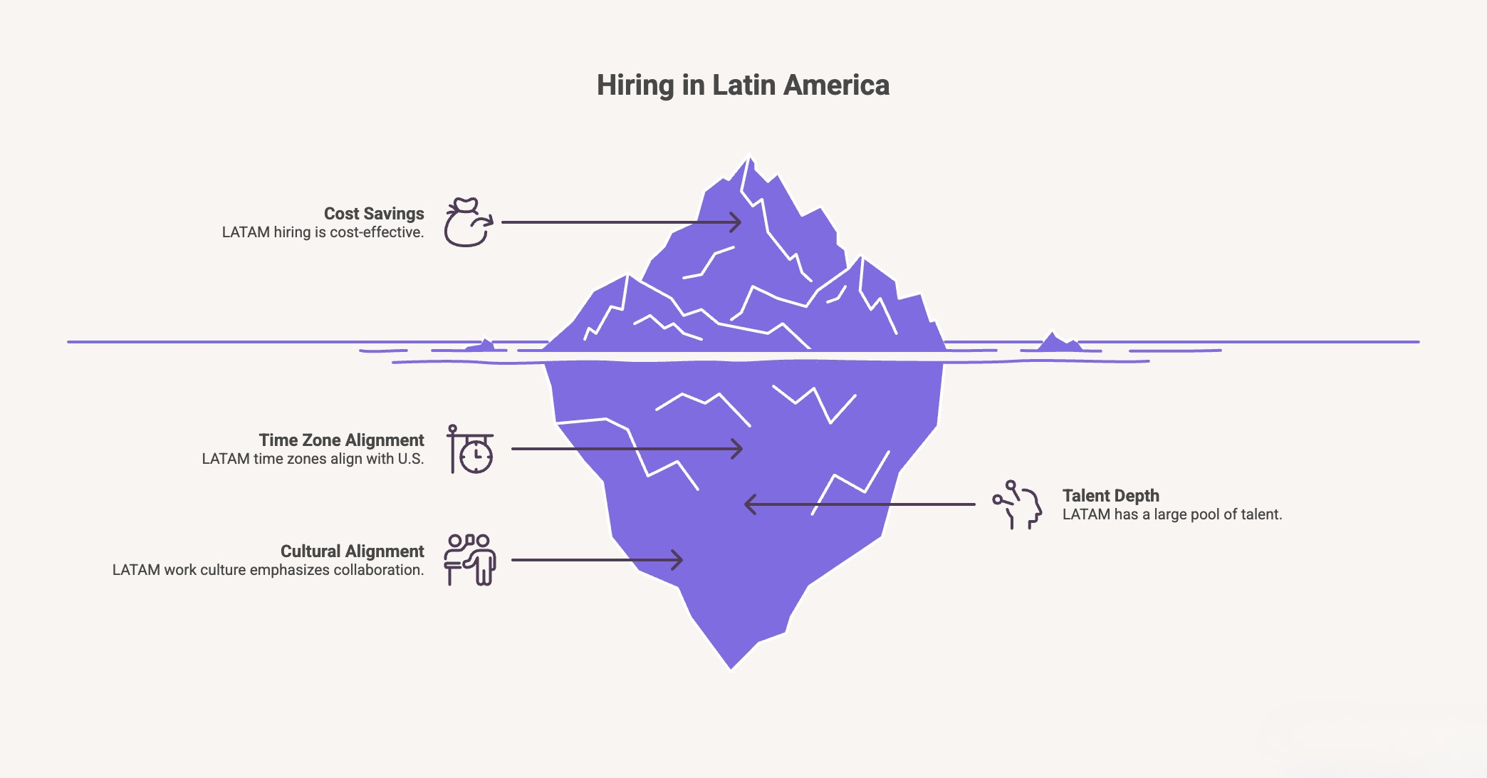 More US companies hire LATAM professionals every year, and the reasons are straightforward: strong talent density, competitive salaries, and timezone overlap that actually works for real-time collaboration.